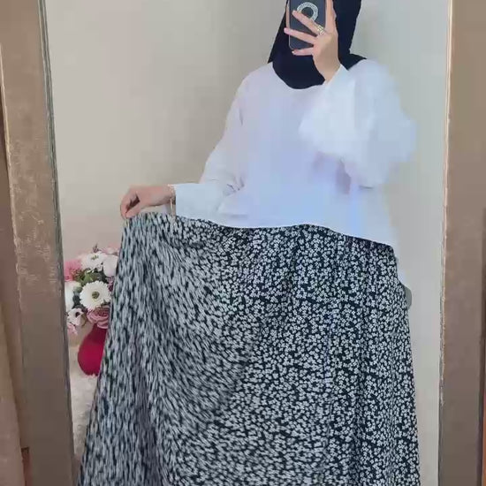 - تنورة طويلة واسعة تمنحك حرية الحركة وأناقة ناعمة (طول التنورة 108سم )